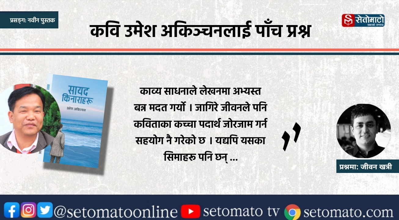 ‘अकिञ्चन’को भर्खरै प्रकाशित कविता कृति ‘सायद किनाराहरू’मा आधारित भएर कविसँग सम्पादक जीवन खत्रीले गरेका पाँच प्रश्न र जवाफ;