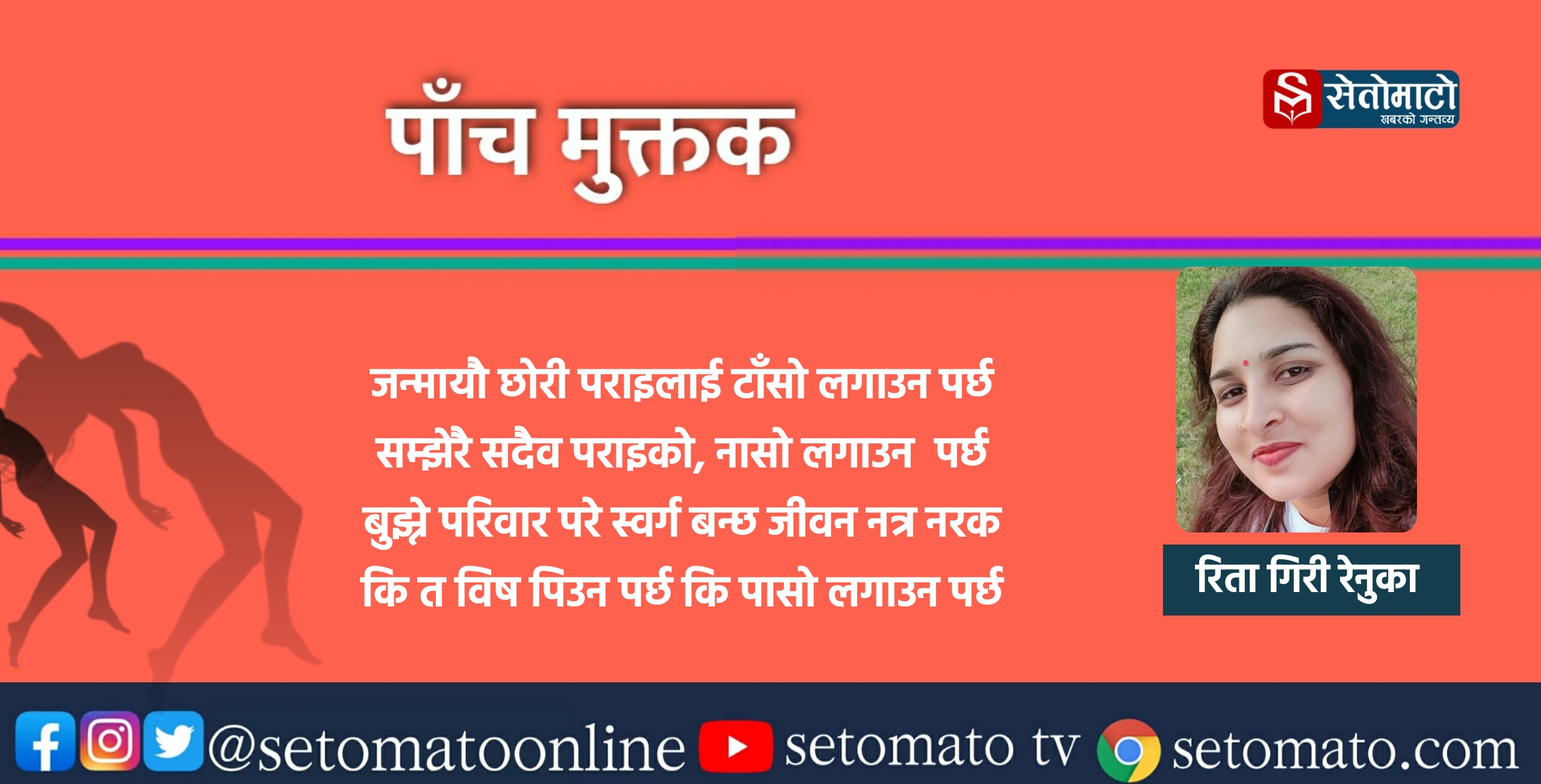 जन्मायौ छोरी पराइलाई टाँसो लगाउन पर्छ