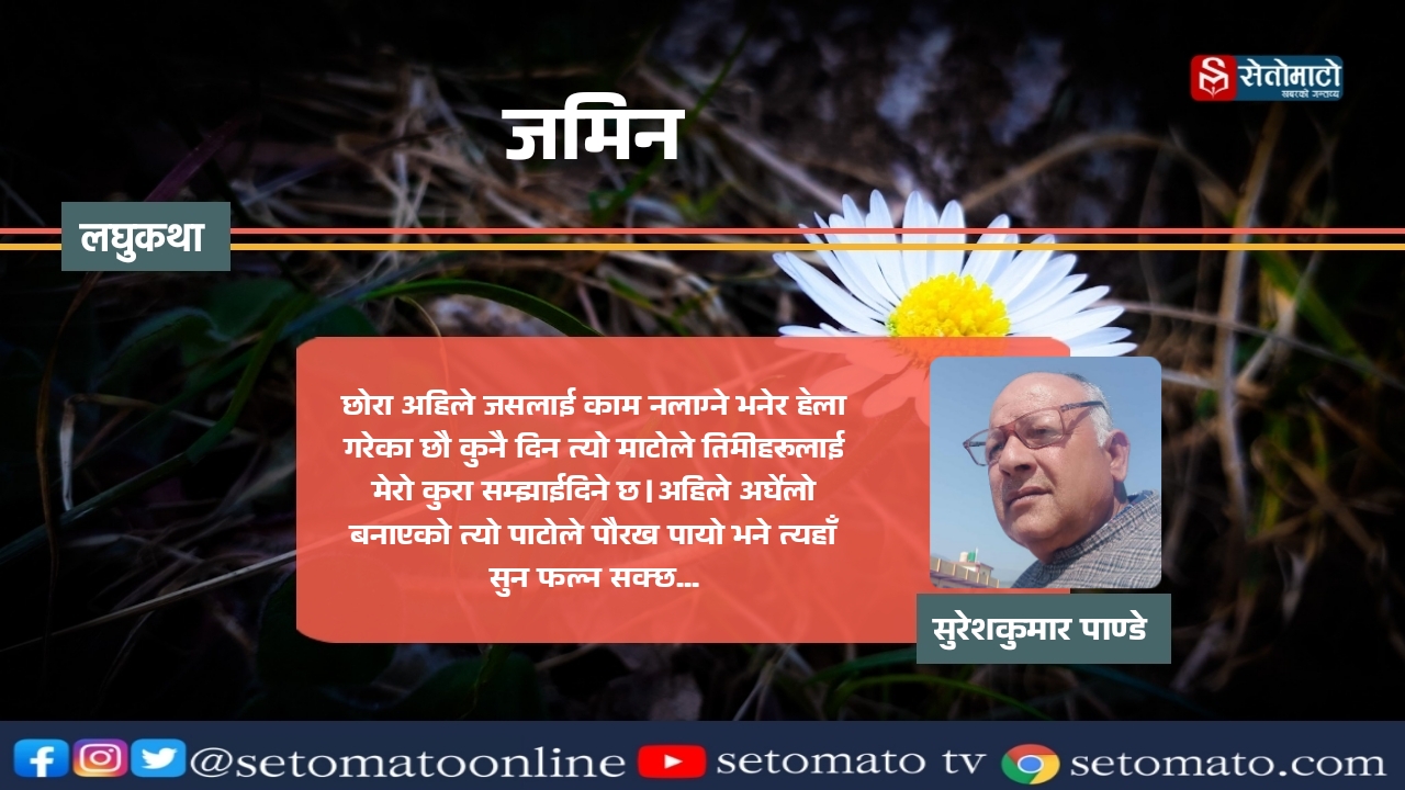 “ल्याइदिनु न बाबा !” पप्पुले अरविन्द तिर मुस्कुराउदै भन्यो। चिसोको मौसम भएपनि तेज घामले गर्दा अरविन्दलाई पनि पानी तिर्खा लागेको थियो। ” तिमी यतै बस म सुन्तला टिपेर ल्याइदिन्छु।” – अरविन्द नातीलाई सम्झाएर बारीमा पस्यो।