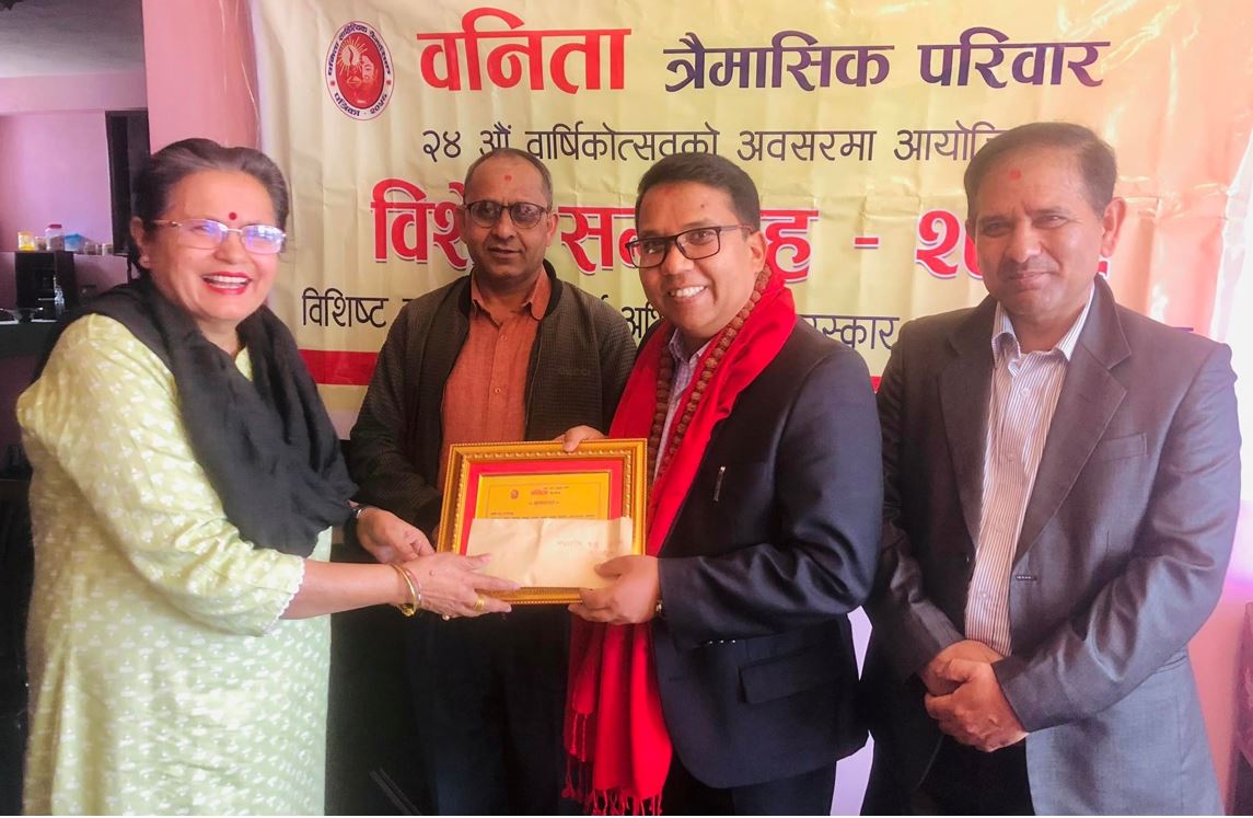 कवि कृसु क्षेत्री व्यथित वनिताश्री सम्मानबाट सम्मानित