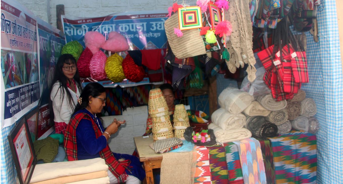 मेलामा राखिएको ढाका तथा खाँडीका कपडा