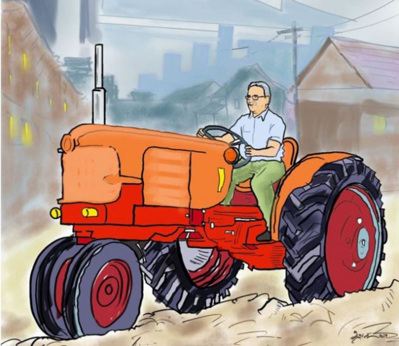 त्यो पनि ट्याक्टरको । यसको सङ्केत यो पनि हो कि उहाँले घुमाउने ट्याक्टरको स्टेरिङले यो हलको समाजवादी बहससँगै क्रान्तिको पनि नायकत्व प्रदान गर्न सकोस् ।