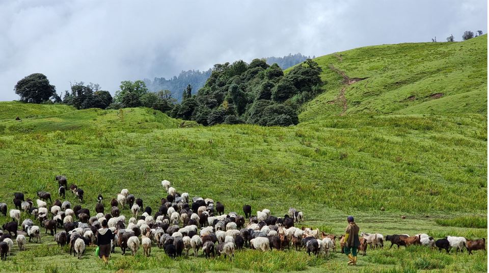 खोटाङ र भोजपुरको सिमानामा पर्ने पर्यटकीयस्थल मैयुङडाँडामा चरनका लागि लगिएका भेंडाको बथान । समुन्द्री सतहदेखि करीब तीन हजार तीन सय मिटर उचाइमा पर्ने पर्यटकीयस्थल मैयुङडाँडामा यतिबेला हजारौँ भेंडा, चौरी तथा घोडाहरु चरनका लागि लगिएको छ ।
