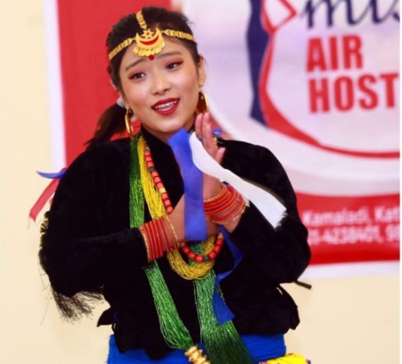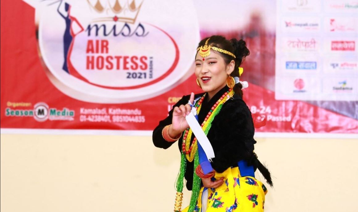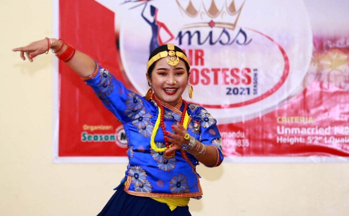काठमाडौँ – सिजन मिडियाद्वारा आइतबार आयोजित मिस एयर होस्टेज २०२१ पाँचौं संस्करण प्रतियोगितामा सहभागीहरुले विभिन्न भेषभूषामा नृत्य प्रस्तुत गर्दै ।