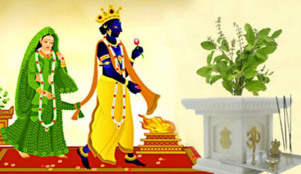 तुलसी विष्णुप्रिया भएकाले यस दिन तुलसीको दामोदरसँग विवाह गर्ने परम्परा बसेको हो । तुलसीको मठ नजिकै विष्णुको प्रतीकका रुपमा निगालाको लिङ्ग गाडेर विधिपूर्वक पूजा गरिन्छ । कार्तिक महिनाभर सबै देवदेवी तुलसीमै निवास गर्छन् भन्ने धार्मिक विश्वास छ ।