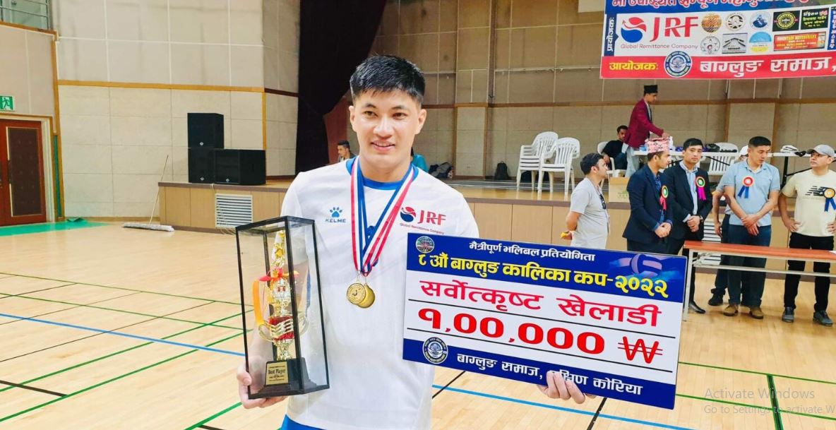 सउल / बाग्लुङ समाज दक्षिण कोरियाले आयोजनामा ‘आठौँ बाग्लुङ कालिका कप मैत्रीपूर्ण भलिवल प्रतियोगिता २०२२’ सम्पन्न गरेको छ ।कोरियाको व्यस्त सहर आनसानस्थित 와동체육관 ९경기도 안산시 단원구 화정천동로० मा आइतबार सम्पन्न प्रतियोगिताको आयोजक बाग्लुङ समाजले प्रथम पुरस्कार हात पारेको छ ।